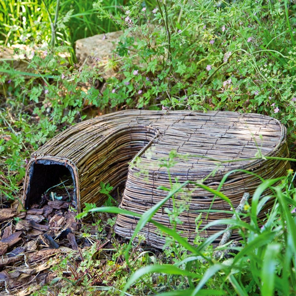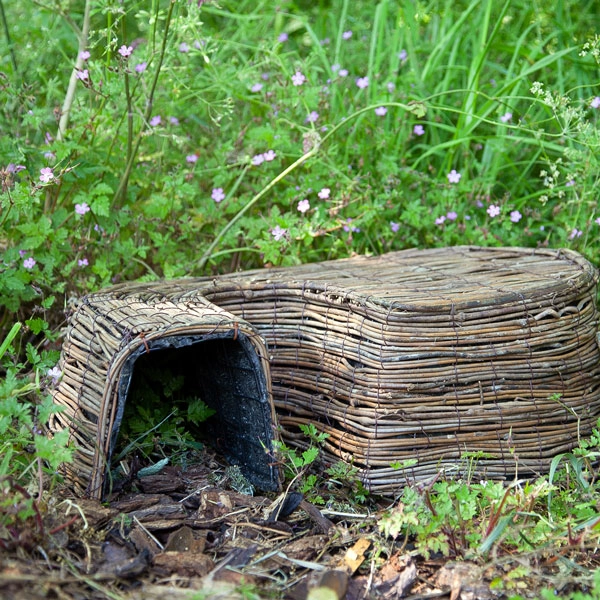 The Hedgehog Retreat is constructed using a rust-proof steel frame covered by a waterproof membrane with an attractive rattan finish. It features an extended predator baffle to prevent intrusion by unwanted animals, giving hedgehogs a safe place during warm summer days or cooler hibernating months.