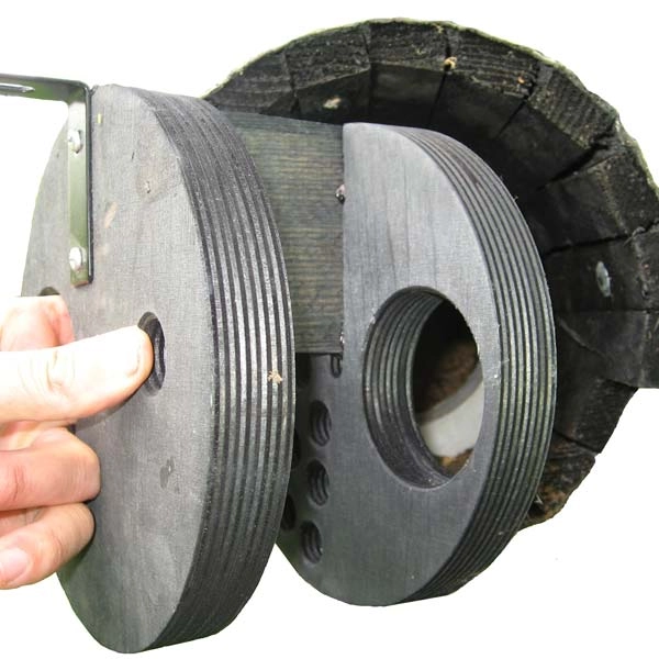 The box is made of rings of wood-concrete surrounded by wood batons and roofing felt.
