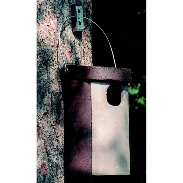 The front panel of the box can be removed for inspection and cleaning purposes. Owls can be encouraged to use the box if a thick layer of wood shavings or sawdust is spread over the recess in the floor.
